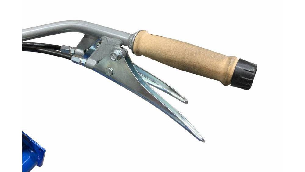 A 77 lb counterweight on the left side of the machine slides into five different positions along the frame. When working uphill or in dry conditions, the weight should be positioned towards the front. When working downhill or in muddy conditions, the weight should be towards the back.