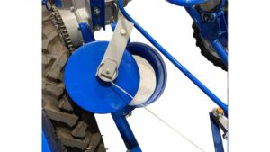 Model 622 features a 51” wide Sickle Bar that cuts plant material 6.75” from the ground. The forks over the cutter bar move in a continuous pattern, bundling cut crop towards the the binding unit, which ties the material approximately 12” above the cut. The binder, a BCS patented design, is intended for crops at least 14” tall with a maximum height of approximately 65″. Sheafs (bundles) are tied and then dropped in line parralel to the row. Four settings allow for varying the size of the tied bundle, from approximately 4″ to 10″ in diameter. Sheaf size will vary with material being harvested and operating speed.