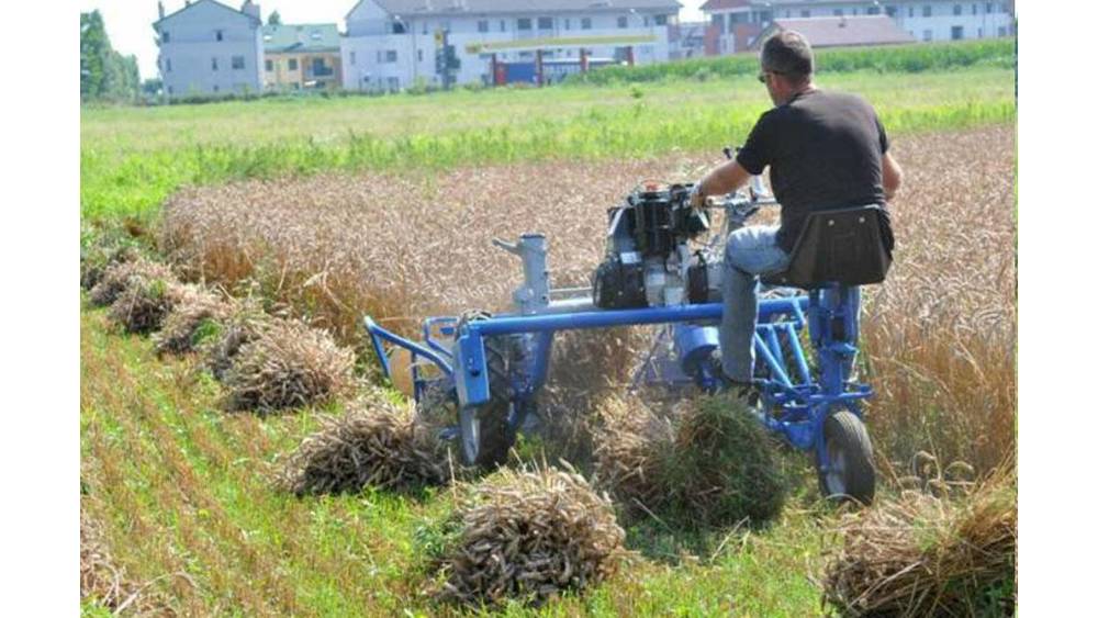 The BCS Model 622 Reaper/Binder is new for North America, but has been sold around the world for many years and is a direct descendent of the very first BCS machines built over 80 years ago. This patented BCS design is a true harvester as it cuts, bundles, and ties crops in a single pass, dramatically reducing harvest time and effort for small grains as well as sesame, lavender, common reeds, and any other crop that requires cutting and tying in heaps or bundles. Small scale grains growers can now take control of their schedule and harvest at the optimal time without relying on hiring a custom harvester.