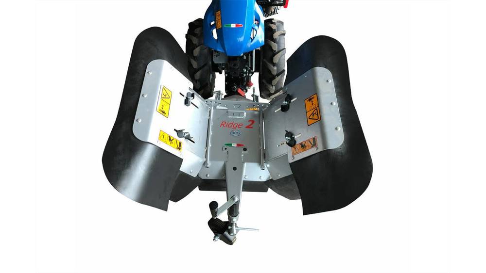 The front-mount Power Ridger, also known as the “Ridge 2,” is the ideal implement for hilling inter-row crops or for clearing weeds from ridges and improving the permeability of the soil.