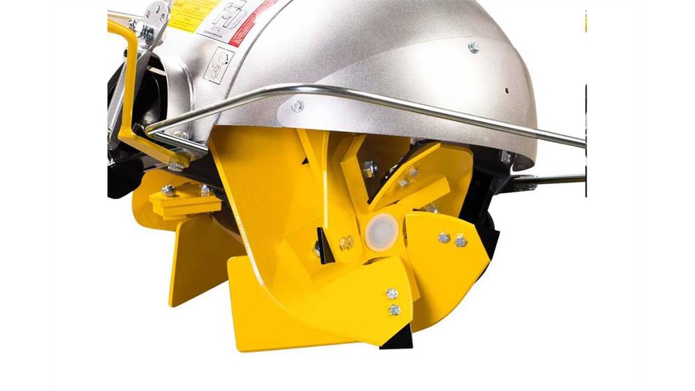 Each plowshare has four spiral blades that spin at 245 RPM on a vertical shaft, digging effortlessly into all types of soil—including hardened, rock-filled dirt that has yet to be broken. Debris is discharged to the left OR right side (not simultaneously), allowing the operator to build raised beds with multiple passes.