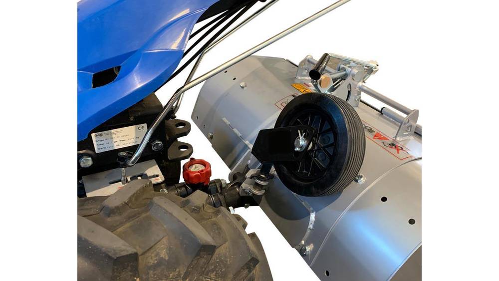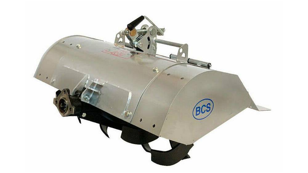 A unique characteristic of this tiller is that it can only be accommodated by one BCS tractor – model 750. This is mainly due to the increased weight of the 33″ tiller, which the 750 tractor compensates for with a heavy-duty cast-iron mounting flange. Model 750 also has an optional transmission weight kit that mounts between the engine and wheel axle that adds an additional 76 lbs to the tractor; thereby helping to counterbalance the weight of the tiller when turning at the end of row.