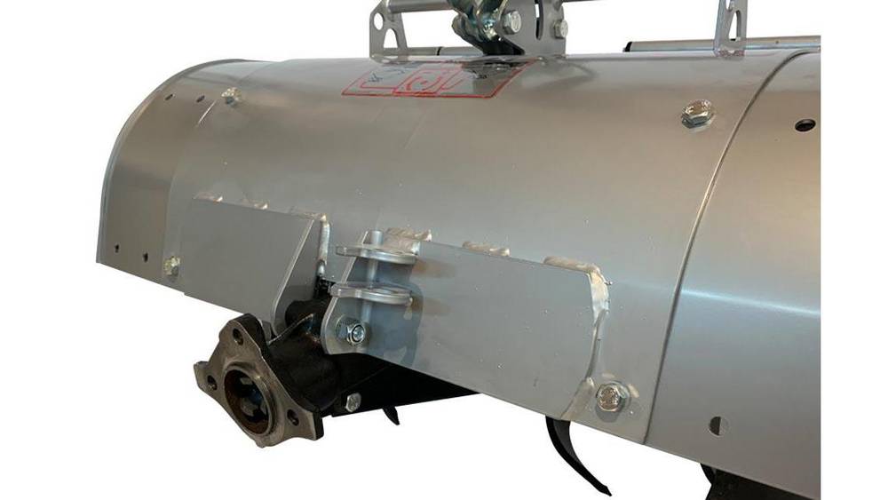 - For safe operation, a PTO-lockout device prevents the tines from spinning when the tractor is shifted into reverse.