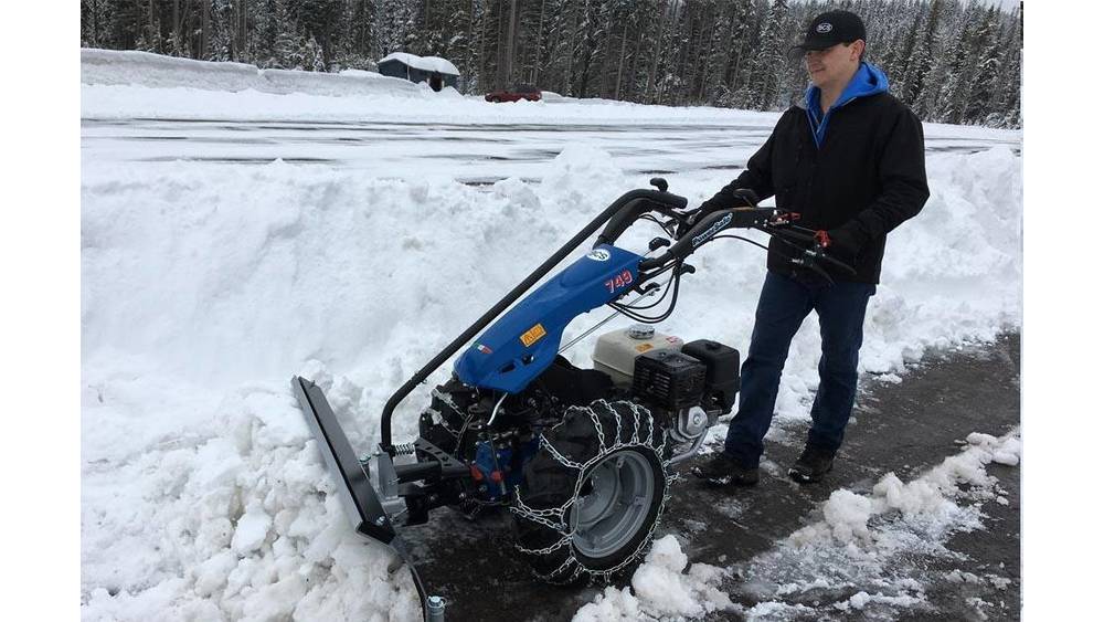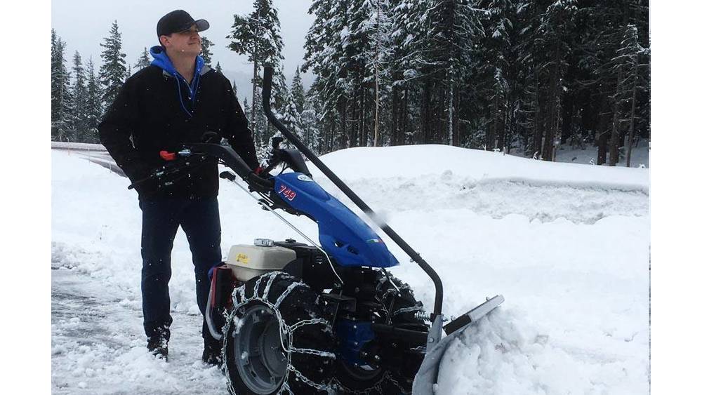 Adjustable skids allow the blade to be raised or lowered depending on the terrain—gravel won’t be collected when pushing the snow!