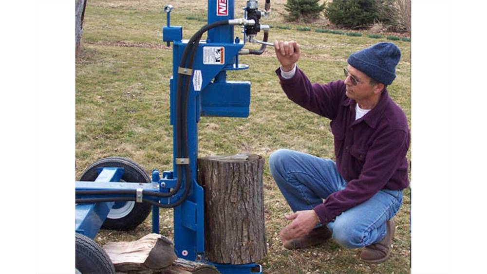 Equipped with a 4″ diameter cylinder and 16gpm, two-stage hydraulic pump, the splitter is conservatively rated as developing twenty tons of splitting pressure that powers through the toughest wood with ease.