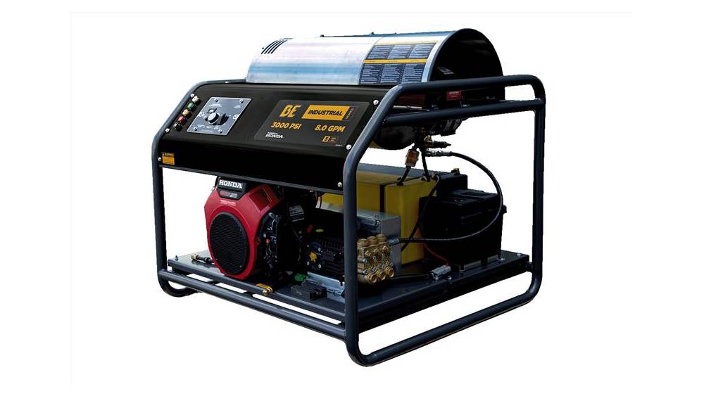 - Double the Flow. Built for Extreme Demands. Ready for the Road: When you need high volume and high heat, the HW3024HG12V from BE Power Equipment answers with serious muscle. Designed for heavy-duty, continuous-use applications, this 3,000 PSI – 8.0 GPM hot water pressure washer delivers powerful cleaning flow, exceptional heat performance, and long-lasting durability in a mobile-ready frame that’s engineered for truck or trailer mounting. Powered by a Honda GX690 V-twin engine with electric start, and paired with a belt-driven General industrial-grade triplex pump, this unit is all about reliability, performance, and efficiency. The 12V Beckett diesel burner heats water up to 200°F (93°C) to cut through grease, oil, and thick grime, while a steel roll cage and premium components ensure you’re ready for the toughest jobs, every time.