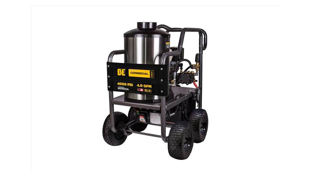 - Hot Water Performance Built for the Toughest Jobs: When high-pressure cold water isn’t enough, the BE Power Equipment HW4013HG steps up with high heat and serious cleaning muscle. Engineered for commercial-grade applications, this hot water pressure washer is designed to melt through grease, oil, and heavy grime where traditional pressure washers fall short. Powered by a Honda GX390 electric start engine and paired with a General triplex pump, this unit pushes out 4,000 PSI at 4.0 GPM—making it the ultimate solution for demanding industrial, agricultural, and commercial cleaning tasks. Equipped with a 12V diesel-fired Beckett burner, a heavy-duty steel frame, and premium accessories, the HW4013HG is ready to take on your dirtiest jobs with professional-grade durability, power, and performance.