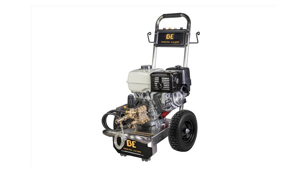 Powered by a Honda GX390 the BE Power Equipment B4213HSCS 4200PSI/4.2GPM Pressure Washer is engineered to handle even your toughest jobs commercial or residential. Built on a stainless steel frame to improve longevity and resist corrosion.
