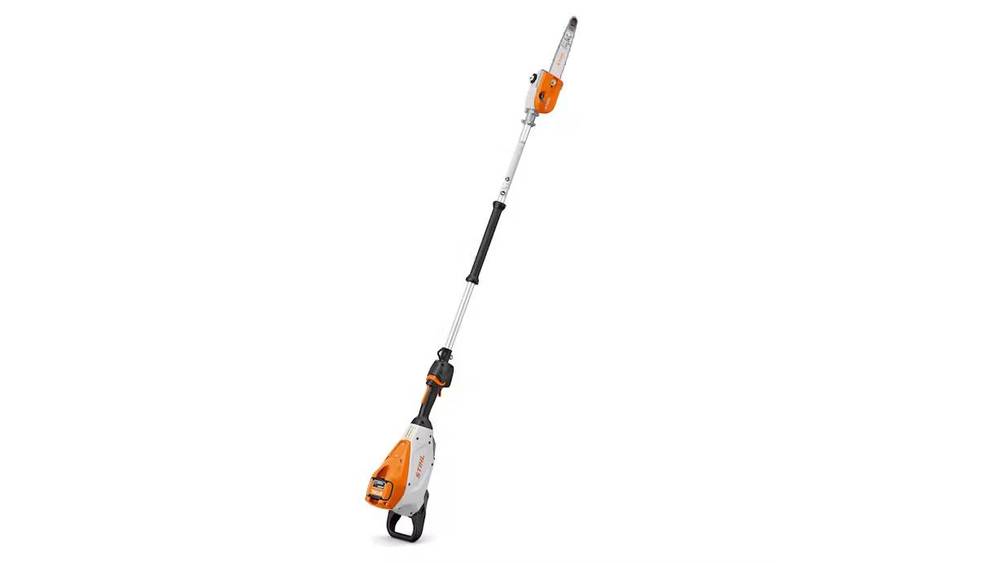 The HTA 150 is a fixed-shaft professional battery-powered pole pruner ideal for thinning and tree maintenance in the forest or pruning fruit trees. Featuring a hollow aluminum shaft, this pole pruner is lightweight and easy to maneuver. It is equipped with a 10” LIGHT01 guide bar and features a 3/8” STIHL PICCO™ Micro™ Mini saw chain for clean, smooth cuts and low vibration. A durable metal gearbox and robust metal branch hook allow for easy removal of loose tree clippings. A foot mount support kit is included, which adds support and stability to the machine when it is resting on the ground. When powered by the AP 300 S battery, this pole pruner has up to a 60-minute run time. The user can also control the machine’s speed with the variable-speed trigger, optimizing performance for the longest run time. The HTA 150’s brushless motor is efficient and virtually maintenance-free. Designed to seamlessly connect with STIHL Smart Connector 2 A, this pole pruner’s design allows users to take advantage of the STIHL Connected platform.