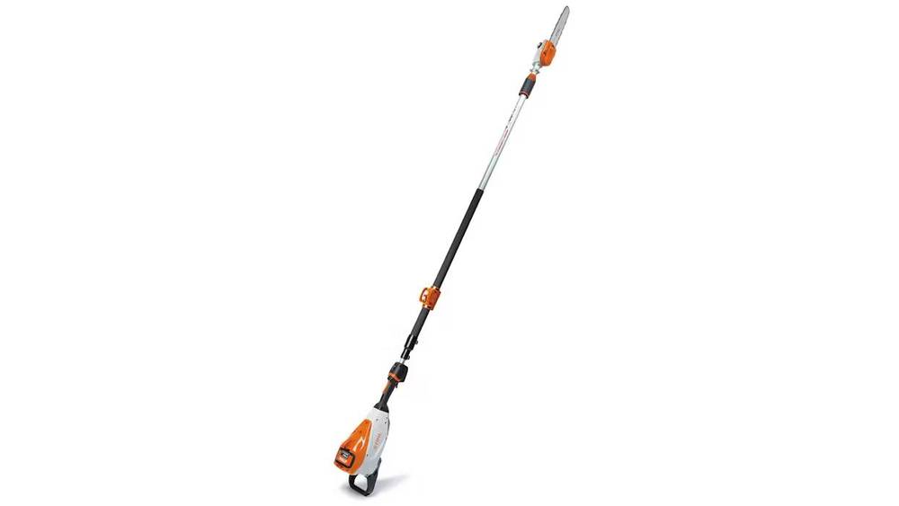With its weather-resistant, high-performance design, the STIHL HTA 135 pole pruner tackles trimming overhead branches with the commercial-grade power and durability of its gas-powered counterparts. It also provides you with the quiet performance and zero exhaust emissions of battery-powered equipment. With durable and field-proven components like a magnesium gearbox and a trusted telescopic shaft, the HTA 135 delivers the cutting performance you have come to expect from STIHL. Its balanced design and ability to quickly and easily extend to over 13 feet helps minimize your fatigue on the job. Including a host of professional features, such as translucent bar and chain oil tank, an included foot mount, onboard battery slot, and variable-speed trigger, the HTA 135 is a true force for experienced pros and demanding homeowners alike.