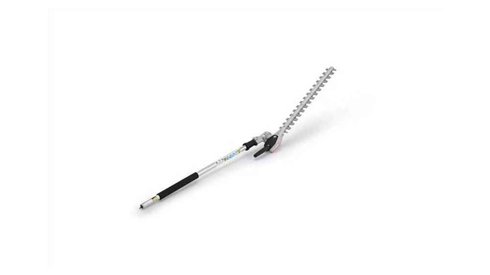 A KombiSystem hedge trimmer attachment with a lightweight gearbox and an adjustable 145° working range.